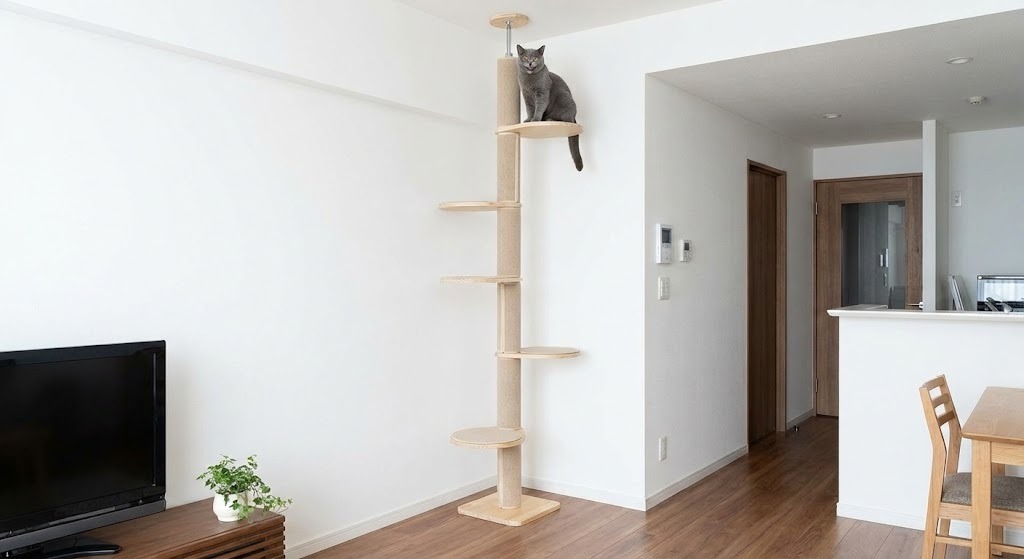 狭い部屋でも運動不足を解消する「突っ張り型キャットタワー」の配置